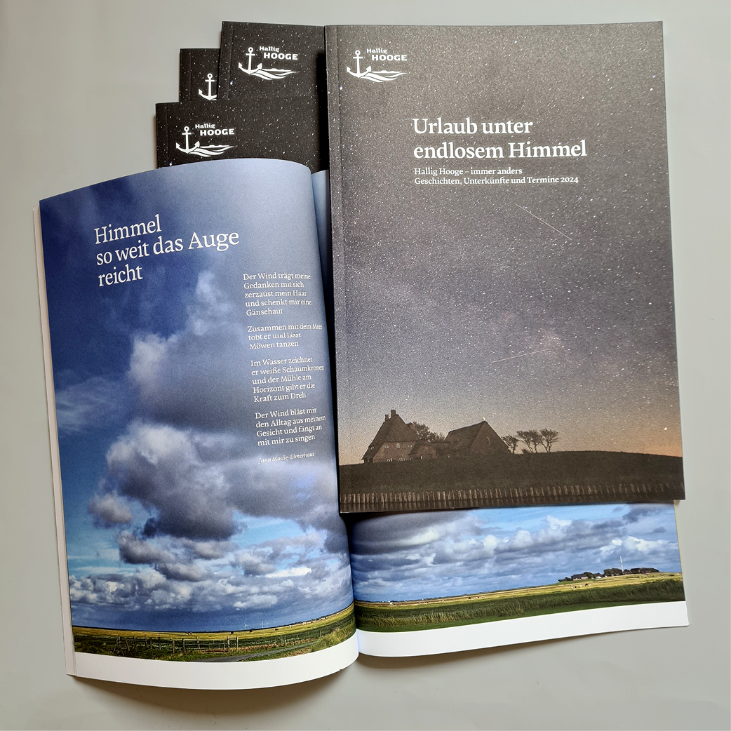 Auch für das Jahr 2025 braucht Hallig Hooge ein Magazin. Diese Ausgabe wurde noch umfangreicher mit weiteren Seiten. Auch diesmal ist es kein reines Gastgeberverzeichnis, sondern mit Erzählung der Hallig-Bewohner und verschiedenen Artikeln ein vielfältiges Magazin geworden.