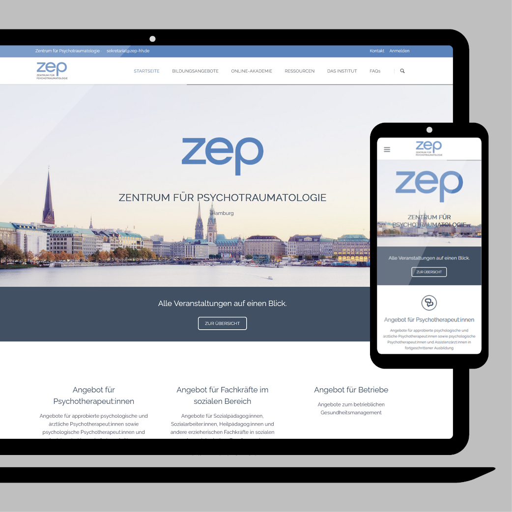 Das Hamburger Institut und Zentrum für Psychotraumatologie bietet breit gefächerte Bildungsangebote für Fachleute an. Diese sind mit einem recht umfangreichen Buchungs- und ebenfalls Bezahlsystem direkt über die Webseite zu nutzen. Ebenso steht ein Online-Akademie-Angebot zur Verfügung wie ein großes Netzwerk von Dozierenden. Dieses Projekt bedurfte viel Vor- und Zuarbeit sowie eine konsequente regelmäßige Pflege.